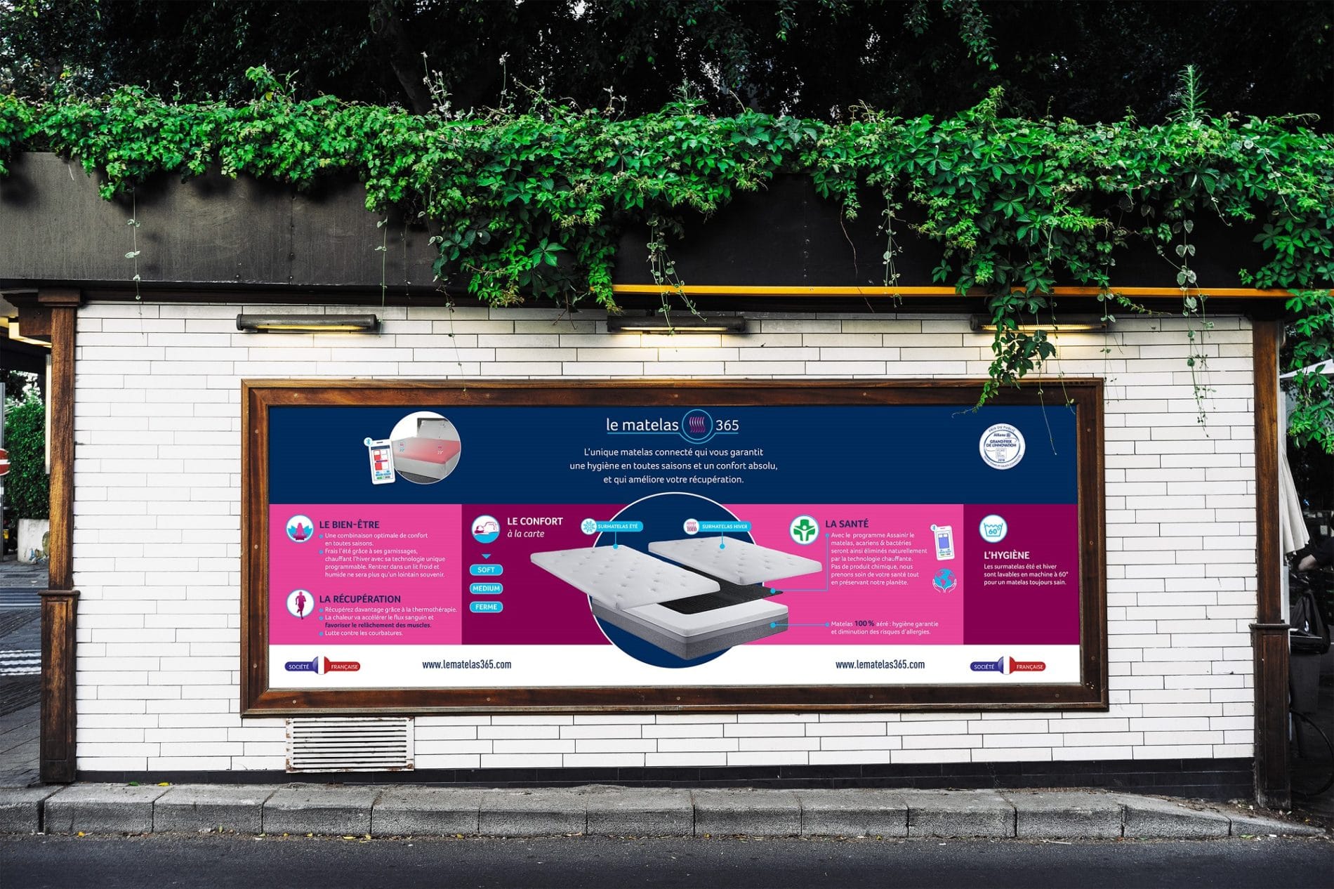 Conception visuelle d'une bâche pour Le Matelas 365, le "Dyson" du matelas.